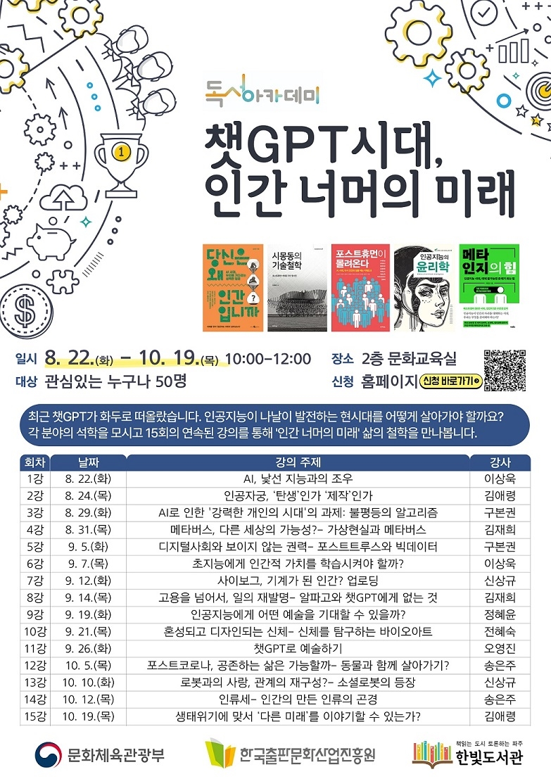 파주시 한빛도서관, 8월 22일~10월 19일 독서아카데미 운영 - 챗지피티(GPT) 시대, 인간 너머의 미래…50명 선착순 모집