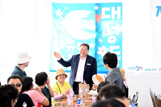 김경일 파주시장이 8월 3일 대성동 마을회관 앞에서 열린 ‘대성동 마을 70주년 기념 행사’에 참석했다.