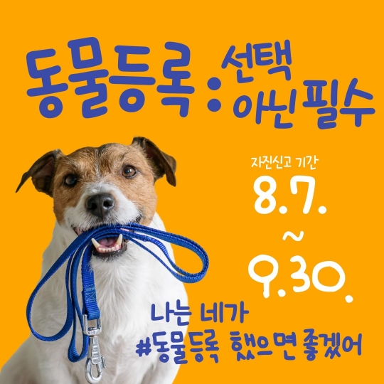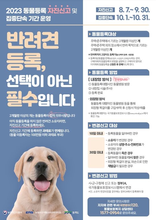이광재 동물관리과장은 “동물등록은 이제 선택이 아닌 필수로, 전국적으로 자진신고 기간을 운영하는 만큼 아직 동물등록을 하지 못한 시민들께서는 자진신고 기간 내 등록 및 변경 신고를 해달라”고 당부했다.