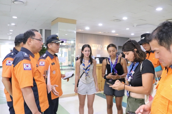 컨설팅 주요 내용은 ▲임시숙소 소방시설물 점검 ▲참가자 숙소 주변 순찰 강화 ▲소화기 비치 여부 및 소방시설 등 유지·관리 사항 확인 ▲피난·방화시설 등 폐쇄·차단 행위 등이다.
