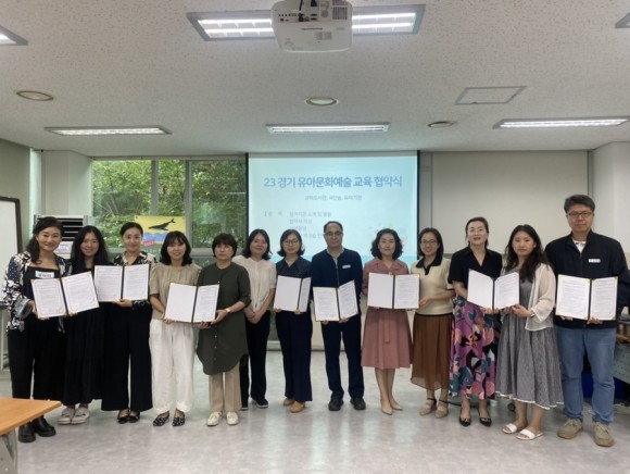 협약식에서 참가자들은 ‘23 경기 유아문화예술교육’의 원활하고 책임감 있는 운영과 유아 중심의 문화예술을 위해 지원과 협력을 해나가기로 했다.