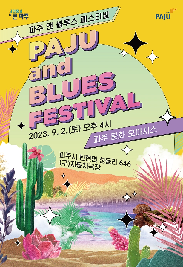 파주시는 9월 2일에 탄현면 성동리 646(통일동산 관광특구 내) 일원에서 블루스를 주제로 한 ’파주 앤 블루스 페스티벌(PAJU and BLUES FESTIVAL)’을 개최한다.