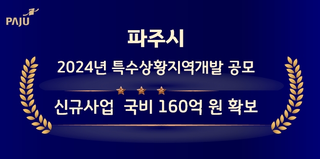 파주시는 행정안전부 주관 2024년 특수상황지역개발 공모 신규사업에 선정되어 국비 160억 원을 확보했다.