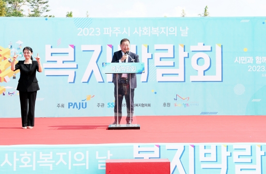 파주시가 주최하고 파주시사회복지협의회가 주관하는 ‘2023년 파주시 사회복지의 날’ 기념행사가 6일 도로관리사업소 앞 수변공원에서 열렸다.