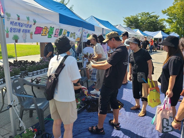이 밖에 ▲폐화분 또는 플라스틱병을 가져오면 꽃모종(제라늄, 파파야)과 화분흙을 제공해 직접 심어갈 수 있는 꽃 화분 심기 ▲물고기 나눔, 어린이 그림 그리기 대회 참가자를 대상으로 한 가족사진 촬영 등 다채로운 행사가 진행됐다.