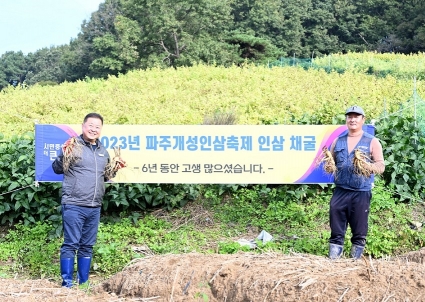 김경일 파주시장은 “낮과 밤의 기온 차이가 심해져 면역력이 약해지기 쉬운 계절에 건강지킴이 역할을 톡톡히 할 파주개성인삼 수확 현장에 함께 해 뜻깊다”라며 “6년근 파주개성인삼 재배가 지속될 수 있도록 인삼 재배 농가를 위한 다양한 지원 정책을 펼쳐가겠다”라고 말했다.