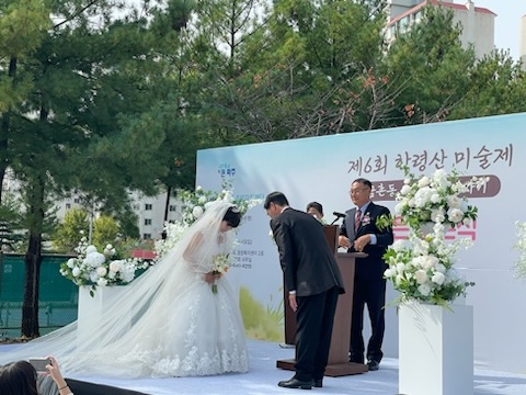이날 학령산 미술제 행사와 함께 경제적 여건으로 결혼식을 올리지 못한 청각장애인 부부에게 작은결혼식을 지원해 따뜻한 마음으로 주민들과 함께 축하했다.