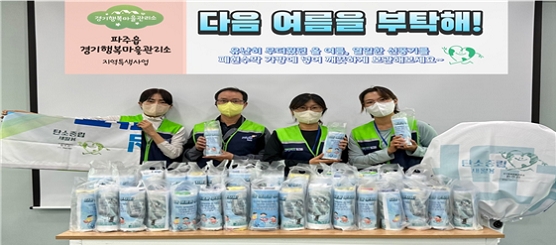 폐현수막을 재활용한 선풍기 덮개를 제작하기 위해 수거한 현수막을 세탁하고, 재봉틀 작업을 통해 봉합했으며, 선풍기 덮개의 중앙에는 행복마을관리소 로고와 전화번호 그리고 탄소중립실천 홍보문구를 새겨 개별포장을 통해 완성했다.