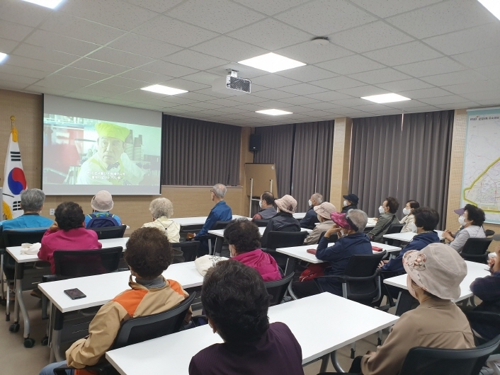 노인의 이해 교육은 영화 ‘수상한 그녀’를 통한 문화교육으로, 극 중 주인공인 칠순 할머니가 ‘청춘 사진관’을 통해 갑자기 인생의 전성기로 돌아가면서 펼쳐지는 이야기로 지금의 나의 행복은 무엇인지 ‘진정한 나’는 누구인지 찾아가 보는 시간이 됐다.