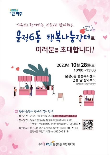 가족과 이웃이 함께하는 파주 운정6동 행복나눔장터로 초대합니다