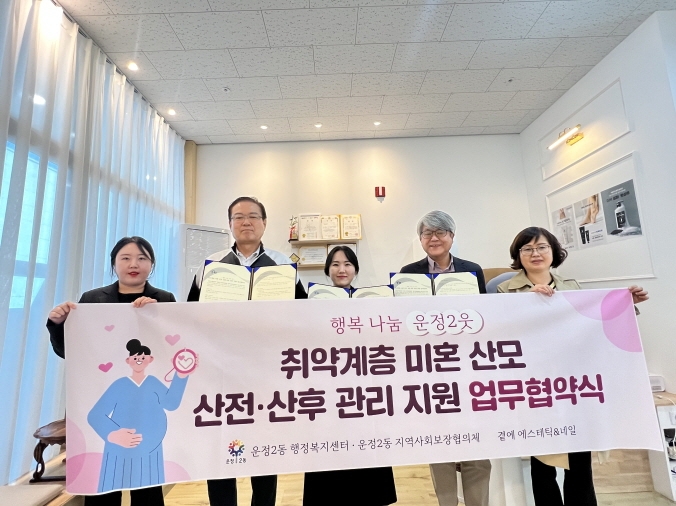 파주시 운정2동은 20일 운정6동에 소재한 ‘곁에에스테틱&네일’과 취약계층 미혼 산모의 경제적 부담을 덜고 심신의 안정을 도모하기 위해 산전·산후 관리 지원 업무 협약을 체결했다.