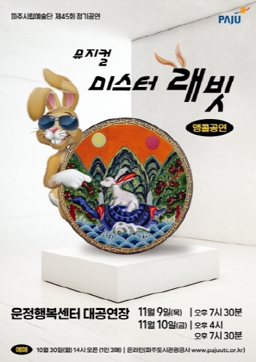 파주시립뮤지컬단은 11월 9일과 10일 운정 행정복지센터 대공연장에 제45회 정기뮤지컬 ‘미스터 래빗’을 올린다.