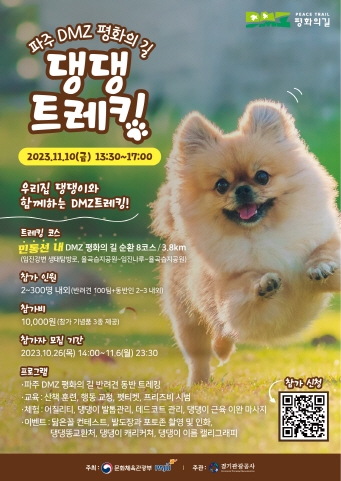 파주시는 11월 10일 파평면 율곡습지공원에서 ‘파주 디엠지(DMZ) 평화의 길 댕댕 트레킹’ 걷기 행사를 개최한다.
