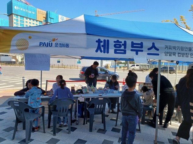파주시 운정6동은 지난 28일 운정6동 행정복지센터 건물 앞 상가 보도에서 ‘행복나눔장터’를 개최했으며, 주민 200여 명이 장터를 찾았다.