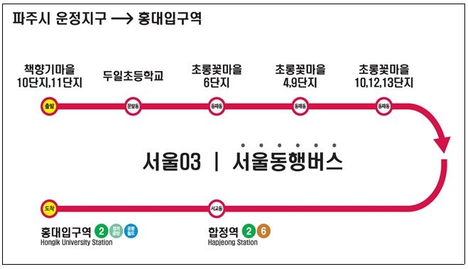 ‘파주 운정~홍대입구역’출근길 서울동행버스 11월 6일 운행 개시