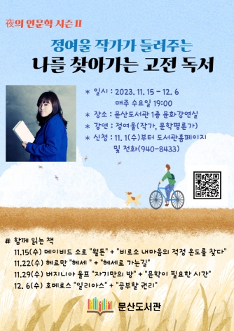 - ‘나를 찾아가는 고전 독서’…11월 14일까지 성인 30명 모집