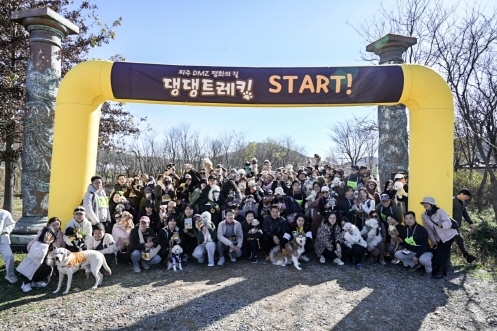 파주 디엠지(DMZ) 평화의 길을 무대로 한 ‘댕댕트레킹’이 지난 10일 율곡습지공원에서 총 100여 마리의 반려견 가족이 참가한 가운데 성황에 개최됐다.
