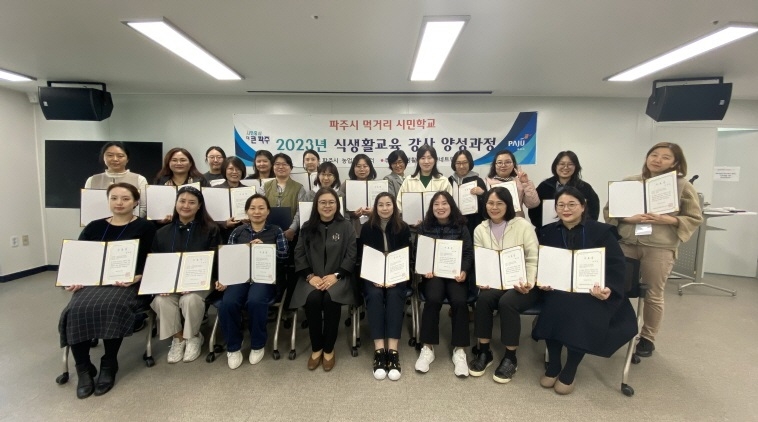 바른 먹거리 교육…파주시 먹거리 시민학교 12월 초까지 운영 - 식생활 교육 전문강사 양성과정 22명 수료