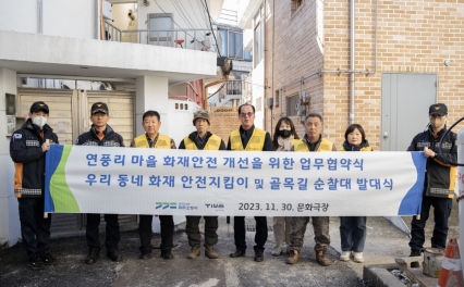 파주소방서(서장 정찬영)와 협동조합인 틔움(이사장 성민규)·연풍다움(이사장 성경용)은 노후 주택밀집지역 연풍리마을의 화재안전을 개선하기 위해 지난 11월 30일 연풍다움 공유식당에서 업무협약(MOU)을 체결했다.