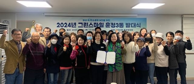 이날 통장협의회 일동은 탄소 중립 결의문 낭독을 시작으로 2024년부터 탄소중립 캠페인, 마을 리더 역량 강화 교육, 아나바다 쓰임 장터 운영 등 마을의 홍반장 역할을 하며 주민들과 탄소 중립 문화 정착을 위해 최선을 다할 것을 약속했다.