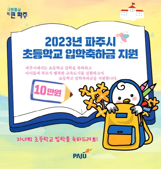 파주시, 올해 ‘초등학교 입학축하금’4억 7천여만 원 지급 완료