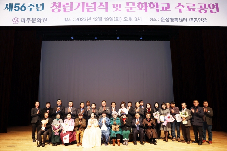 지역 향토 문화의 계승, 발굴, 발전을 위해 설립된 파주문화원의 창립을 기념하기 위해 개최된 이날 행사에는 김경일 파주시장과 윤후덕·박정 국회의원, 이성철 파주시의장 및 관내 주요 기관단체장 등 300여 명이 참석해 창립 56주년을 축하했다.