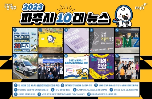 이번 10대뉴스 선정 결과를 받아본 김경일 파주시장은 “2023년 올 한 해도 파주시 발전을 위해 마음과 힘을 모아준 시민의 관심과 성원 덕분에 뜻깊은 결실을 이뤄낼 수 있었다”라며 시민들을 향해 감사의 뜻을 전했다.