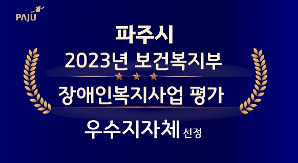 파주시는 보건복지부 주관 2023년 지자체 장애인복지사업 평가에서 ‘우수지자체’로 선정되어 보건복지부 장관상을 수상했다.