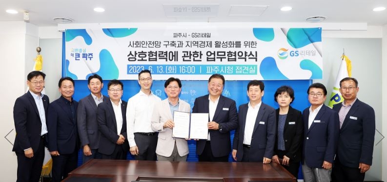 파주시와 지에스(GS)리테일이 지역사회 내 24시간 꺼지지 않는 사회안전망 구축을 위한 업무협약을 통하여 지에스(GS)25편의점 내 자동심장충격기를 설치했다.