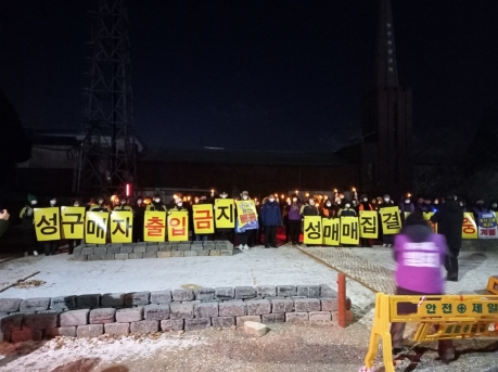 지난 21일 저녁 8시 연풍리 성매매집결지에서는 영하 15도를 밑도는 추운 날씨에도 파주시자율방범연합대(공조 순찰), 적성여성의용소방대, 세계평화여성연합, 시민지원단, 연풍리주민 등 100여 명이 참여해 ‘성구매자 출입 금지’ ‘성매매집결지 폐쇄 중’이라고 쓰인 팻말과 촛불을 들고 캠페인을 실시했다.