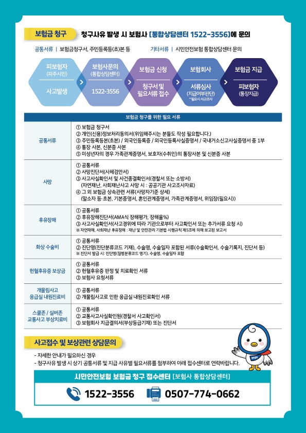 - 파주 시민 자동 가입, 사고발생일로부터 3년 안에 보험금 청구