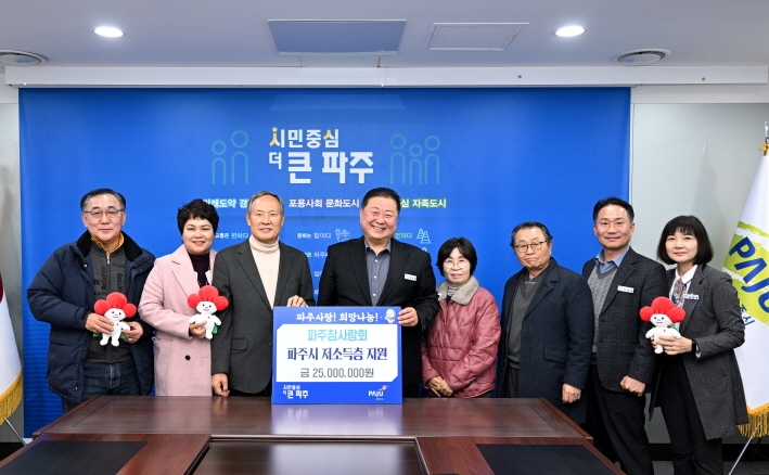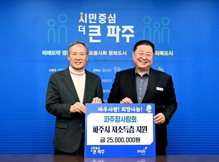 파주시는 12일 파주참사랑회로부터 홀몸 어르신 등 관내 저소득 취약계층을 위한 성금 2,500만 원을 전달받았다고 밝혔다.