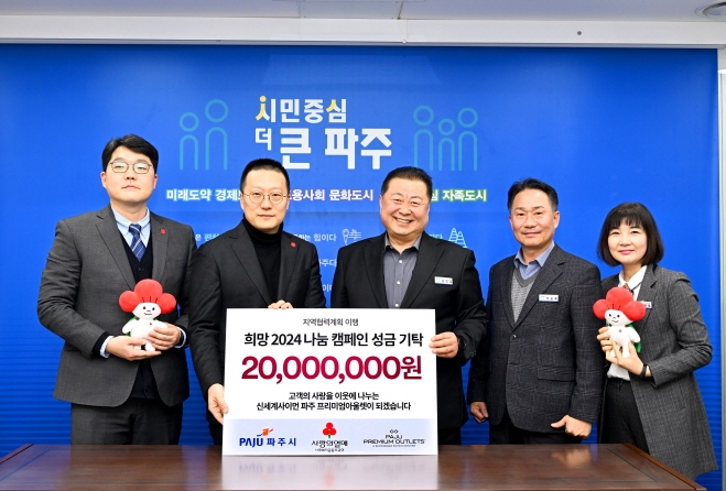 김경일 파주시장은 “파주 프리미엄 아웃렛의 따뜻한 성금에 감사드리며, 관내 어려운 이웃들이 새해를 시작하는 데 큰 힘이 될 것”이라며 감사의 뜻을 전했다.