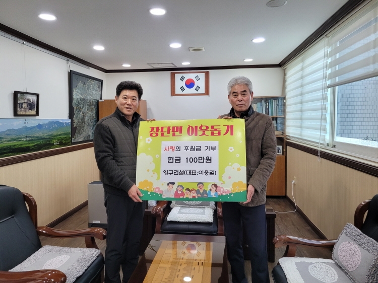 파주시 파평면에 위치한 영구건설은 민족 최대의 명절 설을 앞두고 장단면의 홀몸 어르신들을 위한 후원금을 장단면에 기부했다. 전달된 기부금은 경기사회복지공동모금회로 기탁 처리되어, 이번 달 말까지 배분될 예정이다.