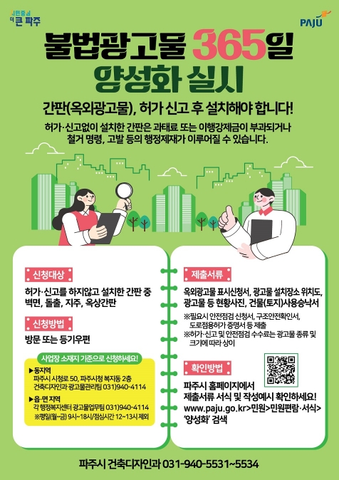 파주시, 365일 불법광고물 양성화 추진…서류 간소
