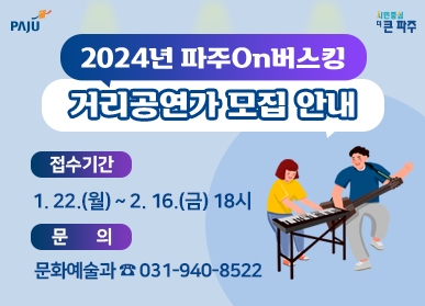 파주시는 2월 16일까지 ‘파주온(On)버스킹’ 사업에 참여할 거리공연가를 공개 모집한다.