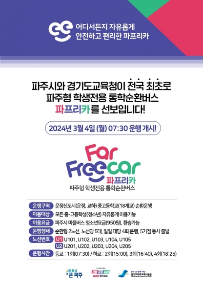 김경일 파주시장은 “파주형 학생전용 통학순환버스는 통학에 어려움을 겪고 있는 학생과 학부모의 고민을 덜어드리는 정책으로, 통학환경을 해결해 주는 것이 학생들을 위한 진정한 교육복지라 생각한다”라며, “우리 학생들이 통학 걱정 없이 일상을 누릴 수 있도록 정책의 완성도를 높여가겠다”라고 말했다.