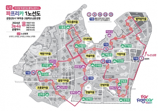이와 함께 시는 ‘파프리카’의 노선도 확정지었다. 작년 말 노선 초안이 공개된 이후 ‘파프리카’ 학생 수요가 있는 해오름마을, 별하람마을을 초기 운행 노선에 포함시켜 운행 개시하기로 결정했다.