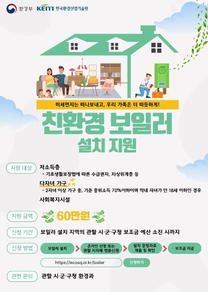 조윤옥 환경지도과장은 “친환경 보일러는 대기오염물질 저감 효과와 함께 높은 에너지 효율로 난방비 절감에도 효과가 큰 만큼 보일러 교체를 앞둔 저소득층 가정이 혜택을 받을 수 있도록 적극 지원하겠다”라고 말했다.