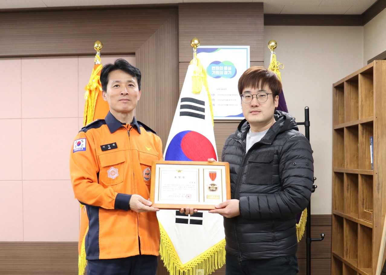 파주소방서(서장 이상태)는 23일 소화기를 이용해 화재를 초기에 진화한 민간인에게 소방서장 유공 표창을 수여했다고 밝혔다.