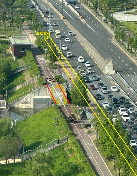 이번에 공사가 진행되는 구간은 한길지하차도와 지상차도가 합류되는 곳으로, 차선 변경을 시도하다 교통사고가 많이 발생하는 구간이다. 특히, 지상차도는 2차선에서 1차선으로 좁아지는 구간이라 사고 위험이 크다.