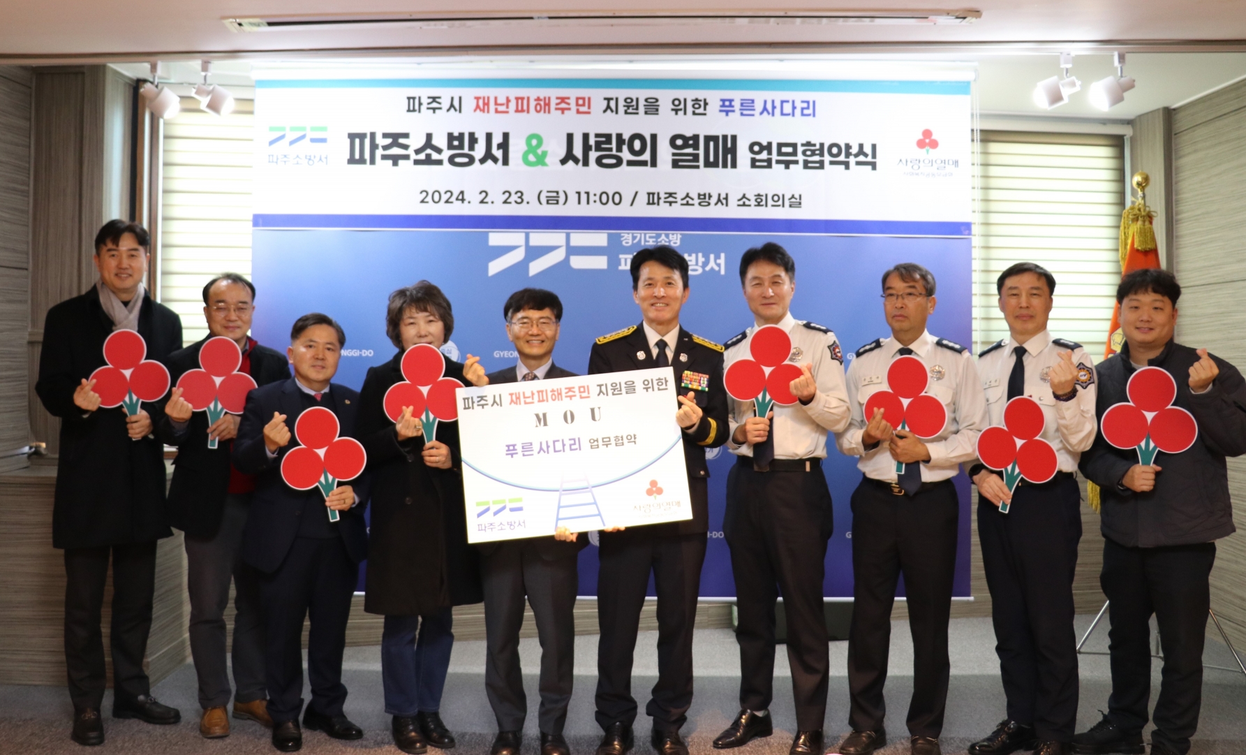 파주소방서(서장 이상태)는 지난 23일 재난 피해주민 지원을 위한 ‘푸른 사다리’ 업무협약을 체결했다고 밝혔다.