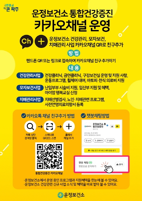 보건사업 한눈에…파주 운정보건소, 카카오톡 채널 개설