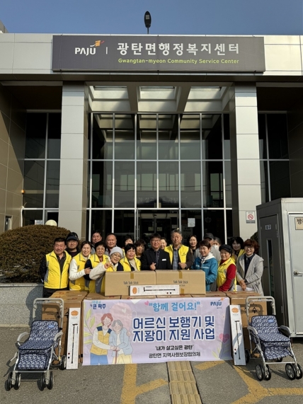 파주시 광탄면 지역사회보장협의체는 13일 광탄면 내 거동이 불편한 저소득 어르신들을 위해 보행보조기 40대와 지팡이 38개를 전달했다.