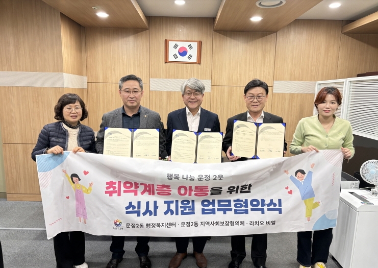파주시 운정2동은 13일 탄현면에 소재한 이탈리아 레스토랑 ‘라치오 비엘’과 관내 취약계층 아동 식사 지원을 위한 업무협약을 체결했다.