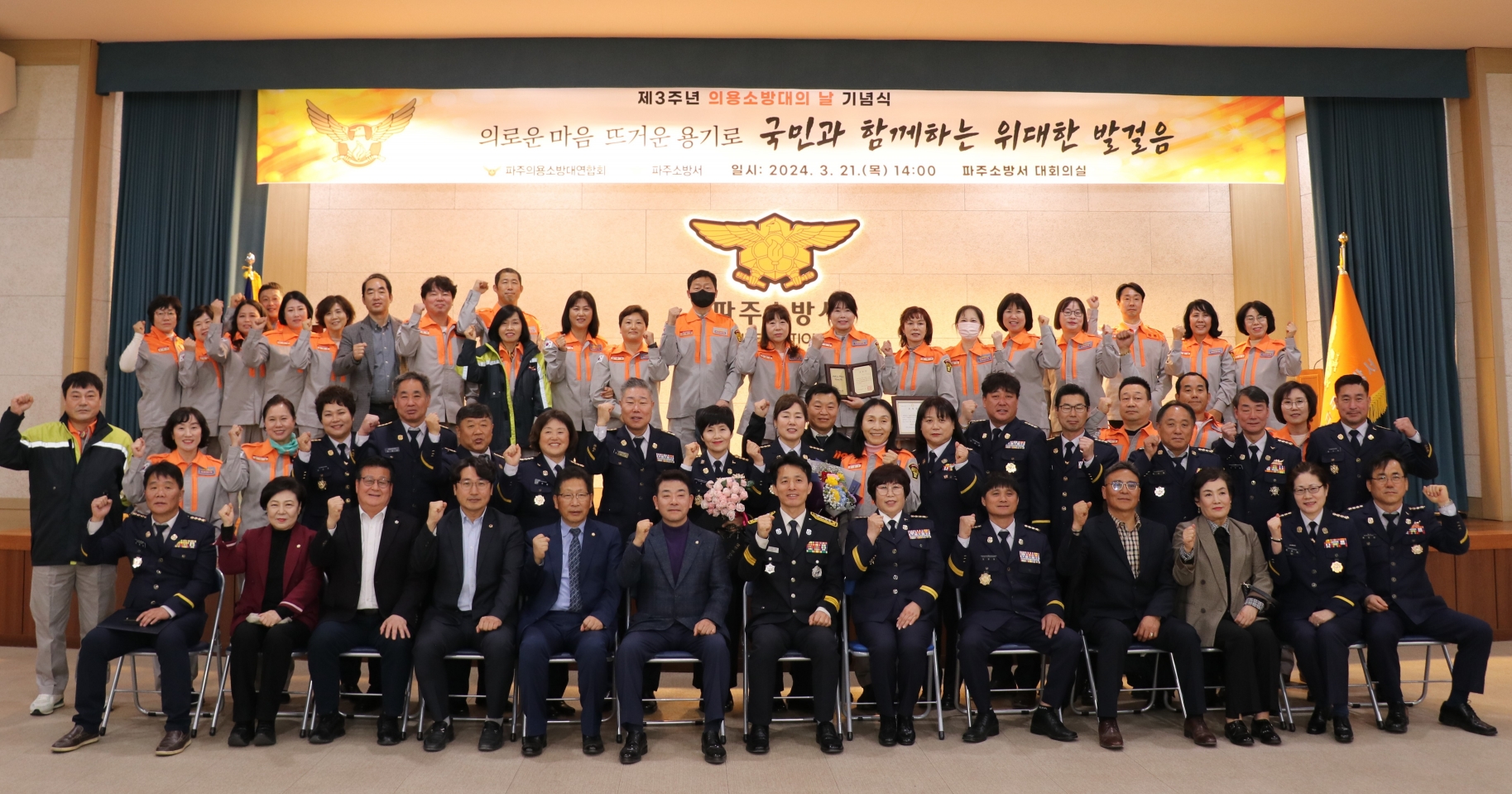 파주에는 전담의용소방대를 포함 19개대 400여명의 의용소방대원으로 구성되어 있으며 각종 재난현장 지원을 비롯하여 화재예방, 사회취약계층 대상으로 봉사활동 등 지역주민들의 안전을 위해 앞장서고 있는 봉사단체로 평가되며 파주시민들로부터 큰 신뢰를 받고 있다.