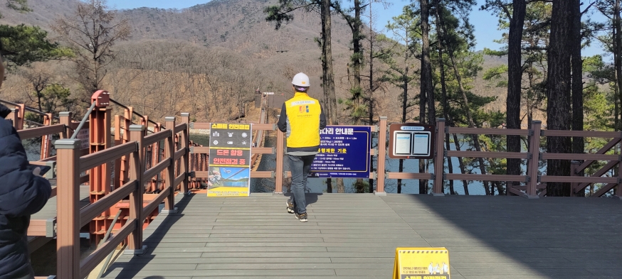 이번 점검은 토목 및 건축분야 전문가인 김창형 도시관광개발본부장과 공사 내 드론운영 자격증을 취득한 직원을 비롯하여 재난안전팀과 함께 진행하였으며, 출렁다리 하부 구조물 등 육안으로 점검이 어려운 시설을 중심으로 드론을 활용하여 안전검사를 진행했다.