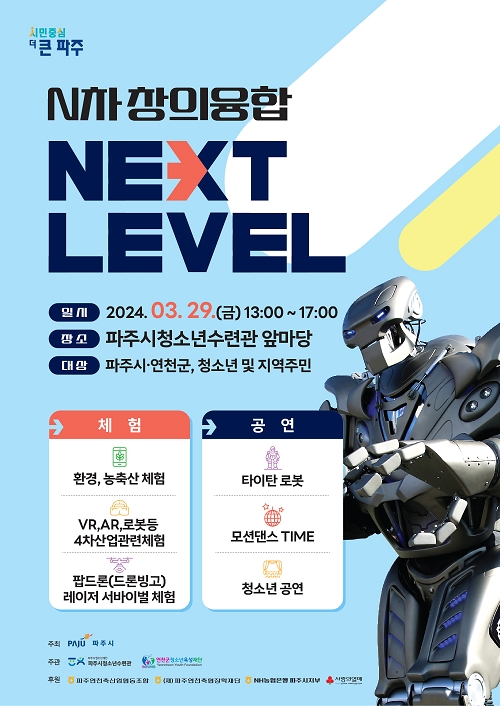 파주시는 오는 29일 파주시청소년수련관 앞마당에서 ‘엔(N)차 창의융합 넥스트 레벨(Next Level)’ 축제를 개최한다.