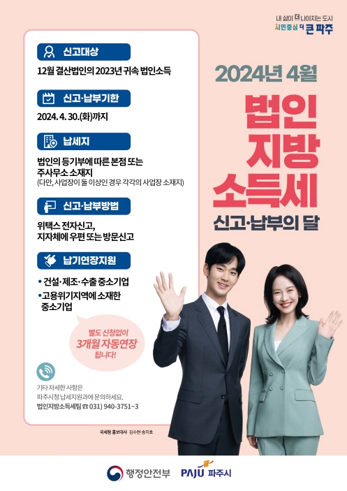 파주시, 4월 법인지방소득세 신고·납부의 달 운영