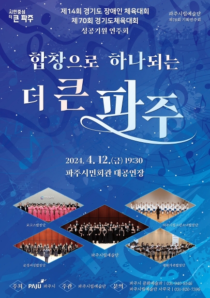 파주시는 오는 12일 시민회관 대공연장에서 제14회 경기도장애인체육대회, 제70회 경기도체육대회의 성공을 기원하는 연주회를 개최한다.